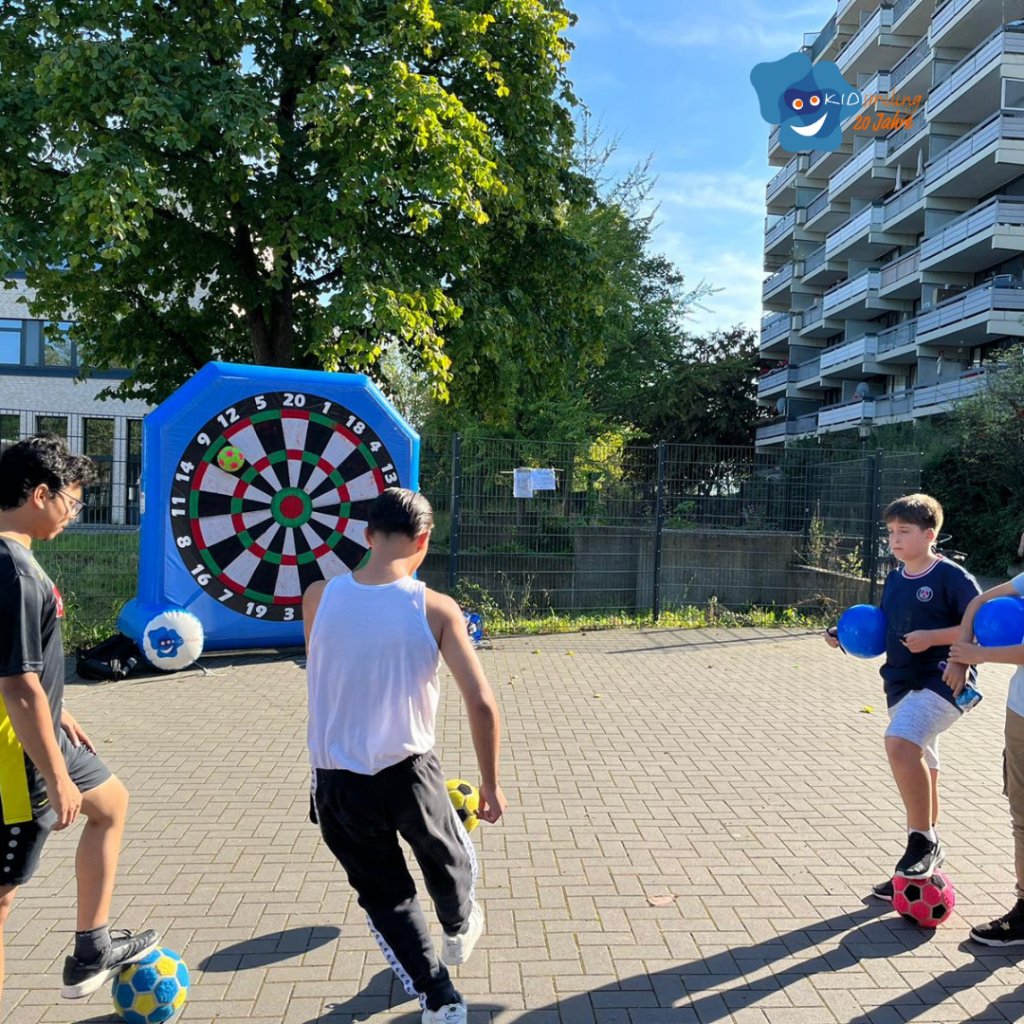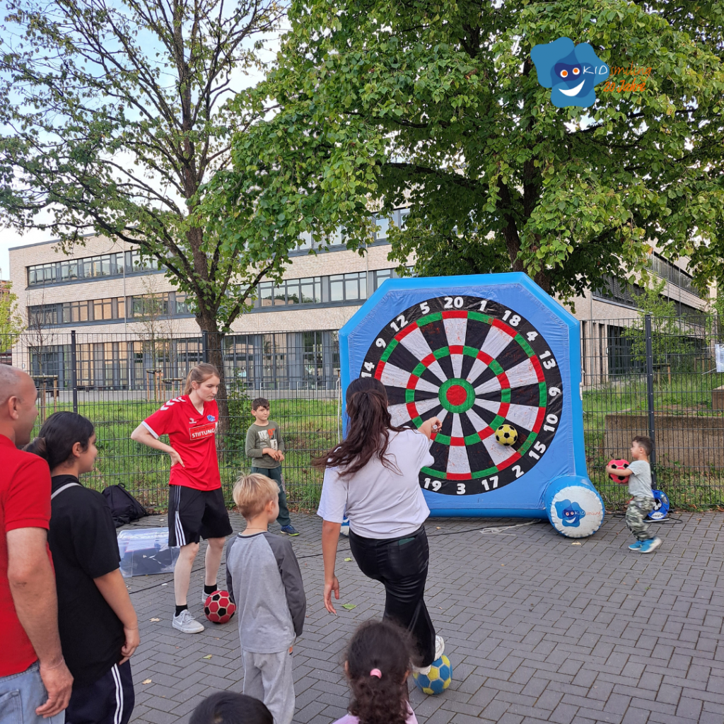 Gemeinsam mit unseren Trainer:innen Svenja und Shravanth machten wir uns am Freitag auf den Weg nach Weiden, wo die Veranstaltung von 16:00 bis 19:00 Uhr stattfand. Unsere Fußballdartscheibe war dort sehr beliebt!