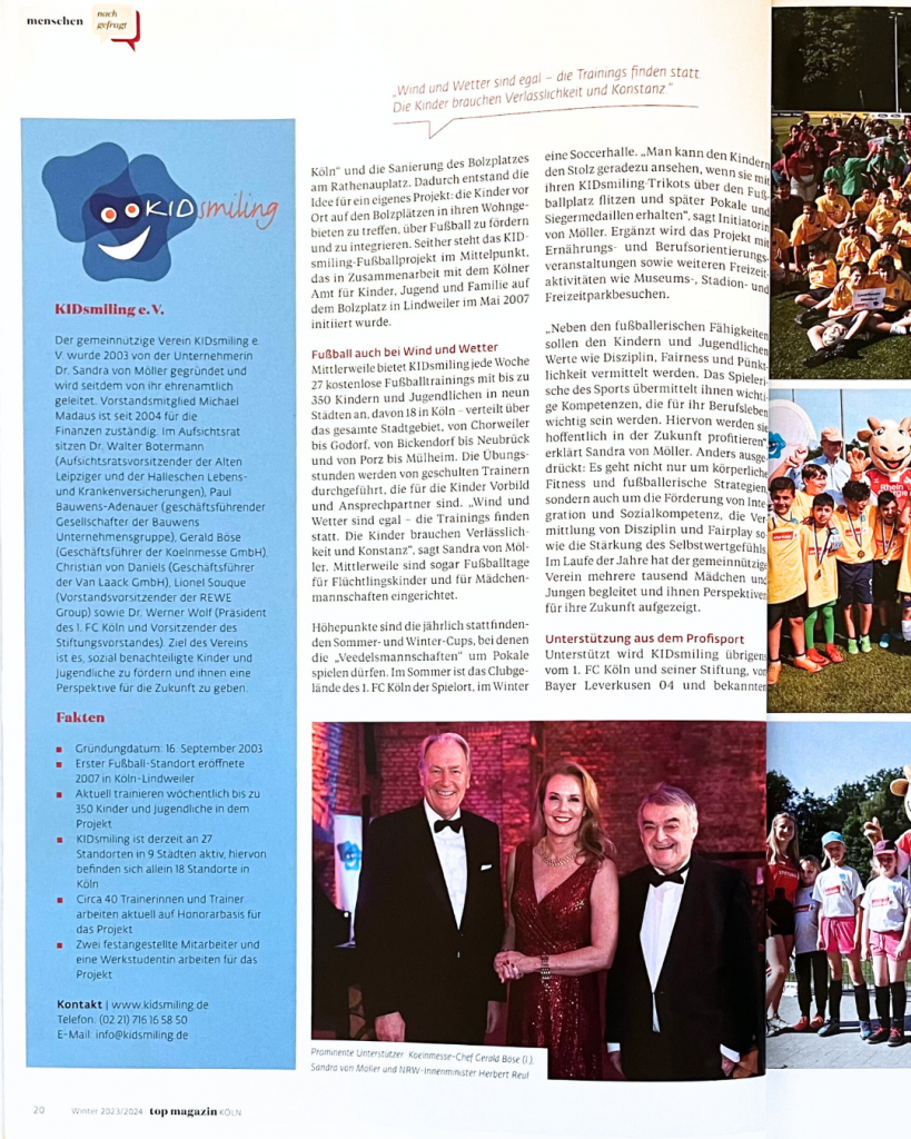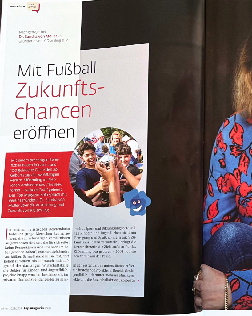 Vielen Dank an das @topmagazinkoeln und den Autoren Frank Tewes für den wertschätzenden Artikel über KIDsmiling in Ausgabe 4 vom Winter 2023/2024!