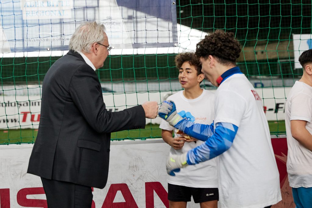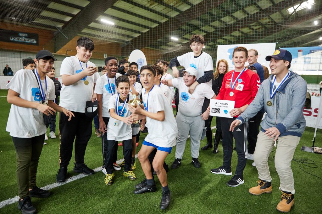 Zur Siegerehrung konnten wir unsere Paten Fecht-Olympiasiegerin Britta Heidemann und den ehemaligen Fußballprofi und Co-Trainer der deutschen U19-Nationalmannschaft Jens Nowotny begrüßen. Allen teilnehmenden Kindern und Jugendlichen wurde eine Medaille überreicht, bevor es zur Übergabe der Pokale kam. Die Plätze 1-3 konnten sich über einen Pokal freuen. Darüber hinaus wurde der Fairplaypokal überreicht, worüber sich bei der U10 die Mädchenmannschaft aus Köln-Nippes und bei der U15 das Team aus Köln-Buchheim freuen konnte. Für die Siegerteams und die Fairplaypokalsieger wurden darüber hinaus Gutscheine für Bubblesoccer und Fußball-Bowling überreicht.