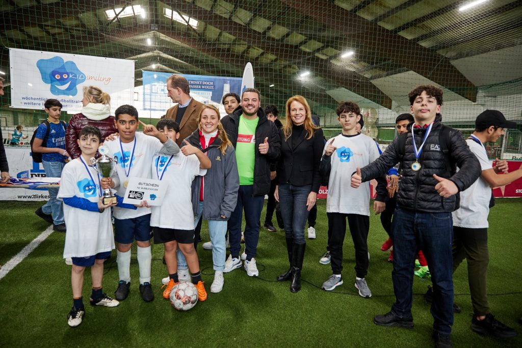 Am Samstag, den 04.02.2023 fand endlich wieder der KIDsmiling Wintercup in der Soccerworld Lövenich statt. 17 Teams von 14 Standorten aus Köln, Bonn und Leverkusen nahmen in den Altersklassen U10 und U15 teil. Vor Anpfiff begrüßte unsere Vorsitzende Dr. Sandra von Möller, unser Finanzvorstand Michael Madaus und Bürgermeister Dr. Ralph Elster die rund 200 Kinder und Jugendlichen. Auch bei diesem Turnier gab es neben den Pokalen für den ersten bis dritten Platz, einen Pokal für die fairste Mannschaft des Turniers zu gewinnen!