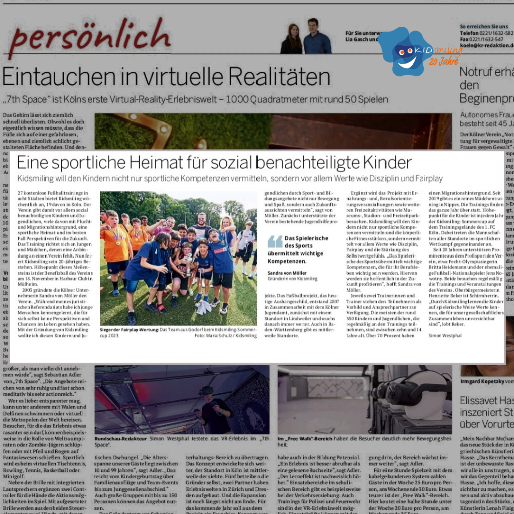 “Eine sportliche Heimat für sozial benachteiligte Kinder” Eine Überschrift, die die Arbeit von KIDsmiling gut beschreibt! Wir möchten uns ganz herzlich bei der kölnischen Rundschau für die tolle Berichterstattung in der gestrigen Ausgabe bedanken! Hier geht es zum Artikel:https://www.rundschau-online.de/koeln/koeln-verein-kidsmiling-feiert-20-jaehriges-bestehen-662858