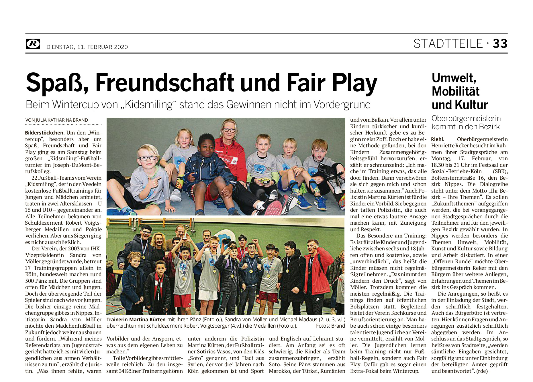 „KIDsmiling Wintercup: Mehr als nur Fußball“, Kölner Wochenspiegel, 19.02.2018