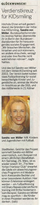 „Verdienstkreuz für KIDsmiling“, Kölnische Rundschau, 22.3.2017