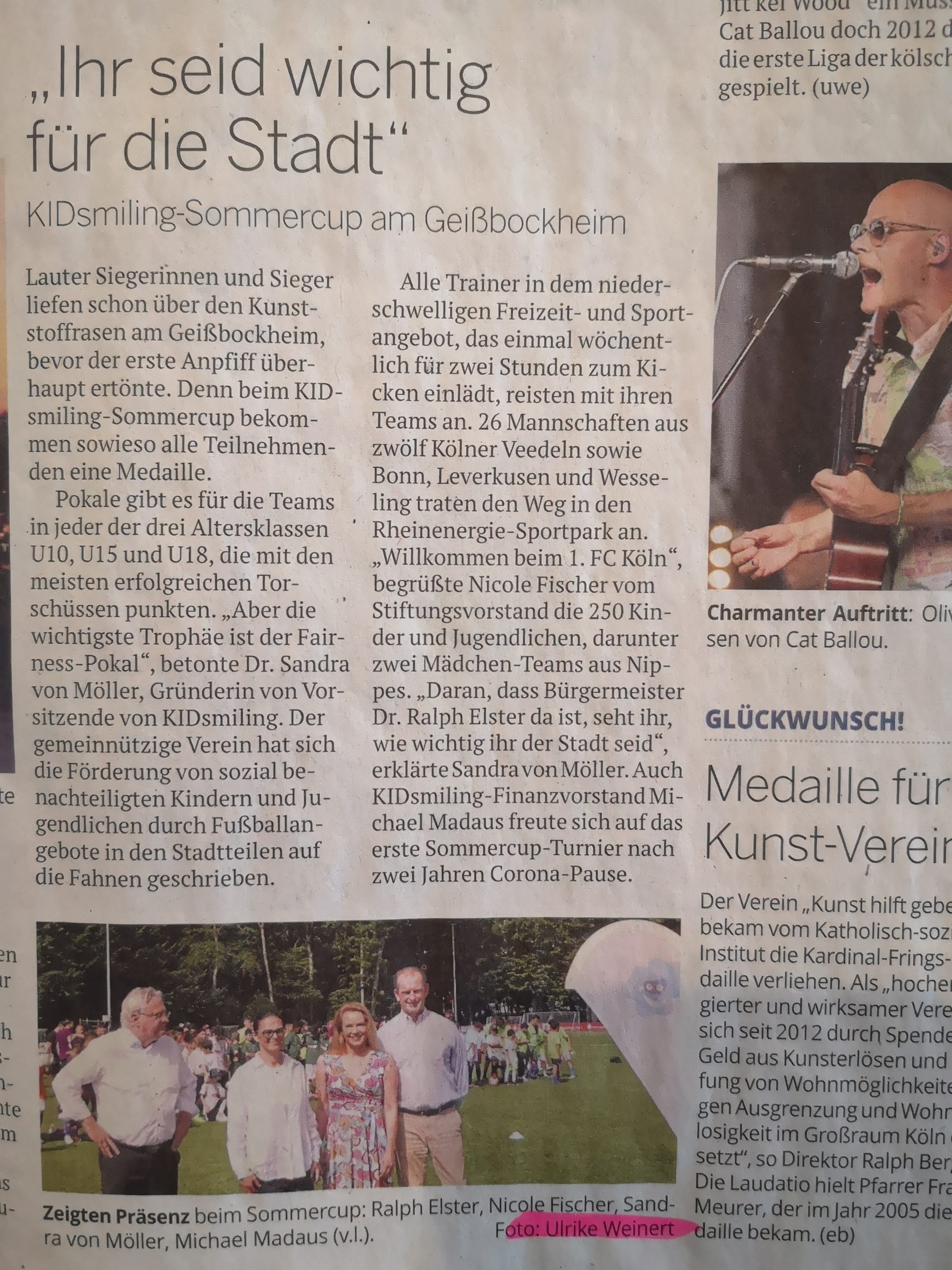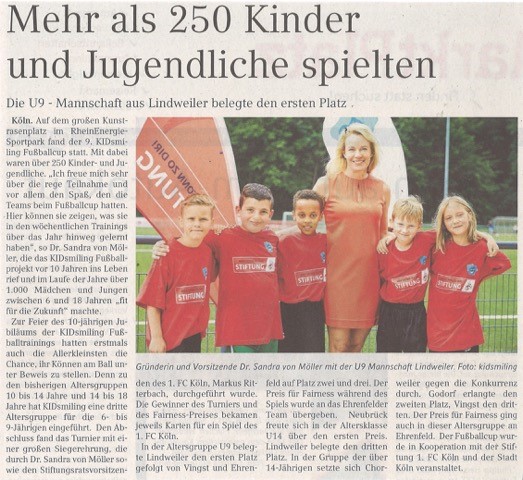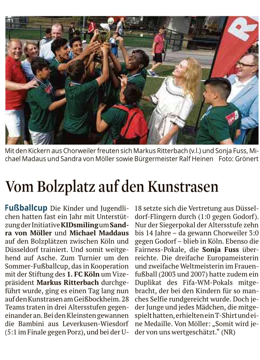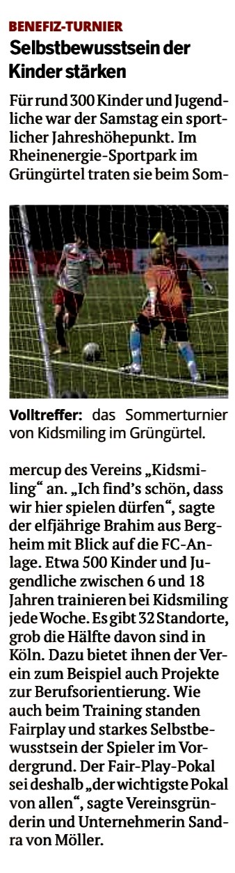 „KIDsmiling Sommercup – ein Kölsches Jubiläum“, Kölner Wochenspiegel 10.09.19