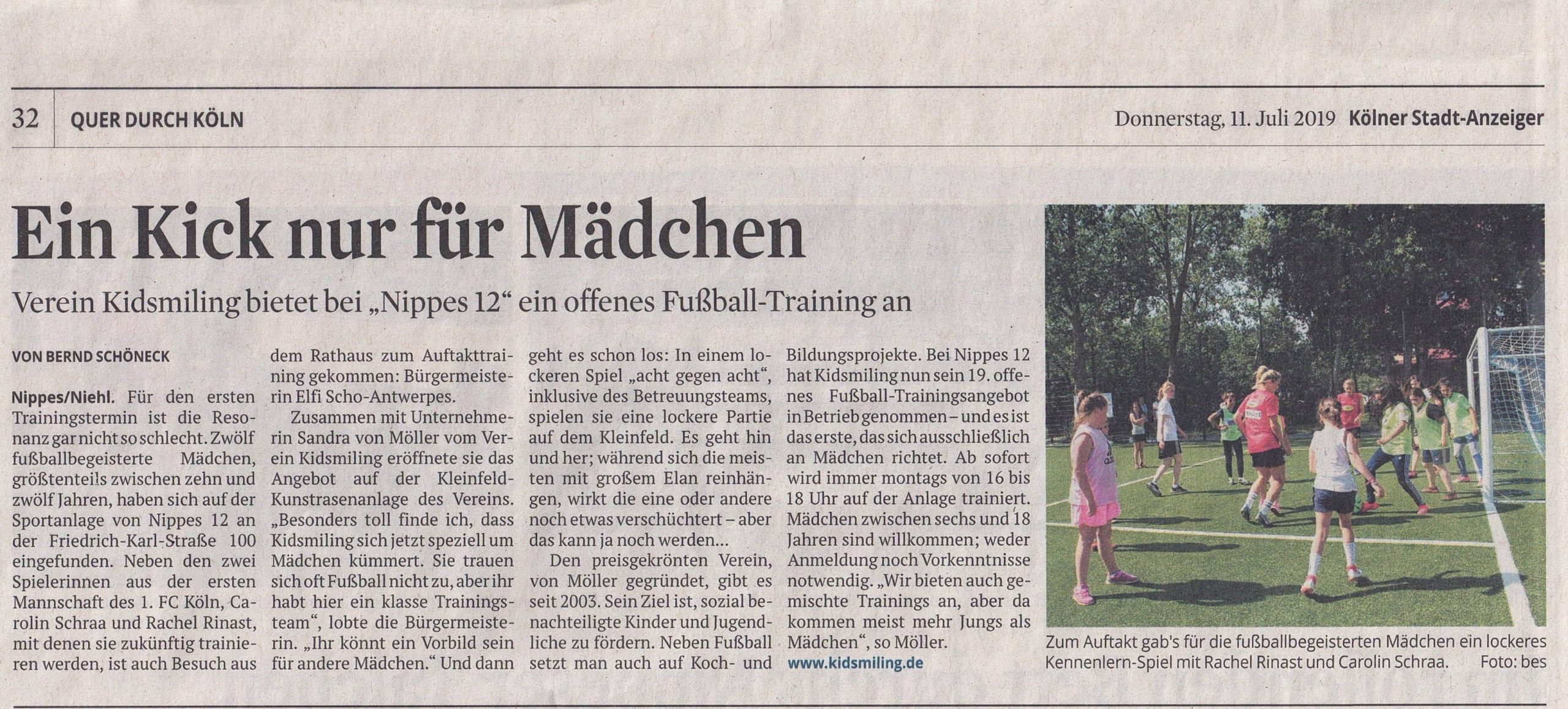 „Ein Kick nur für Mädchen“, Kölner Stadt-Anzeiger, 11.07.19
