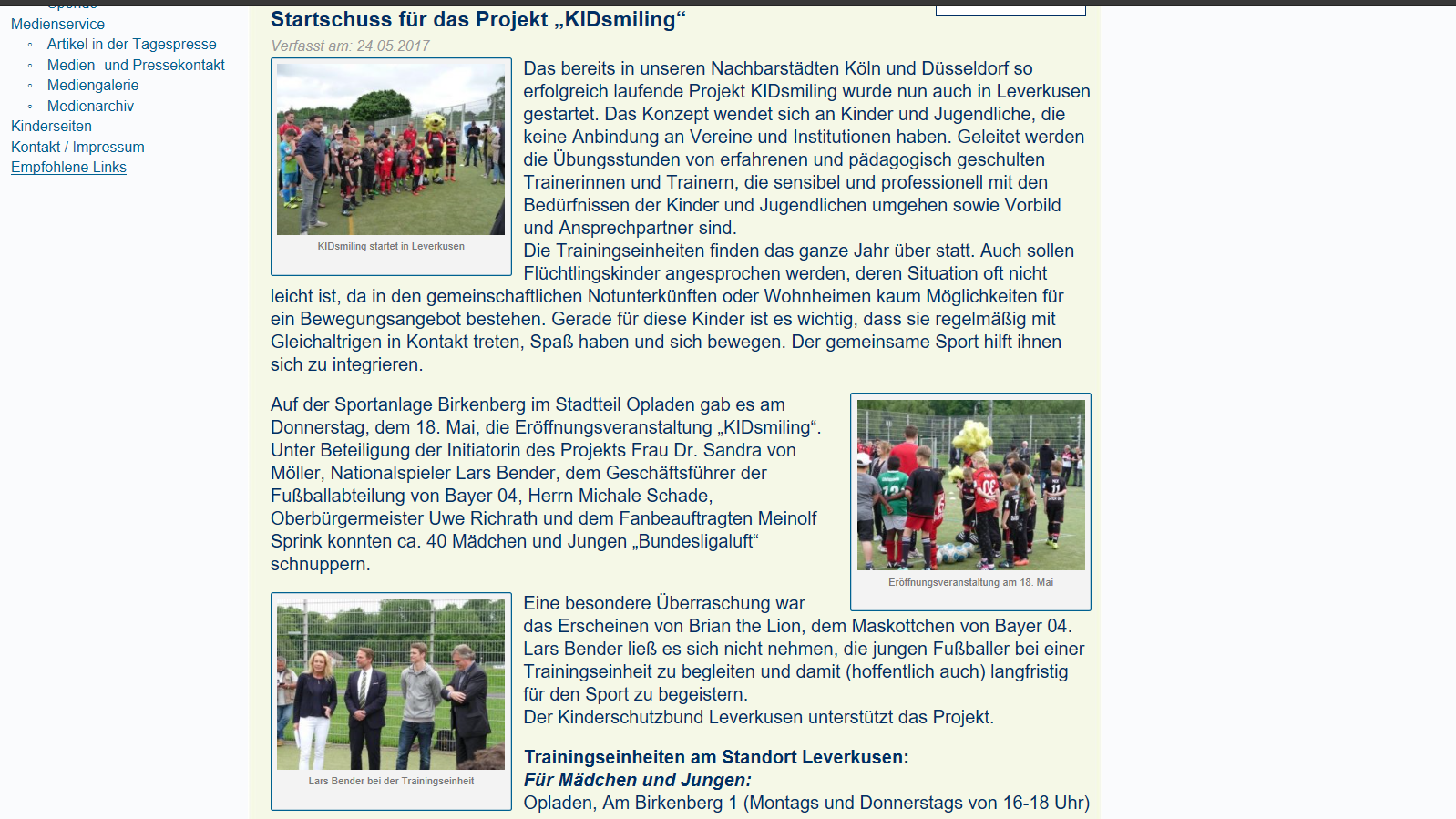 „Bayer Leverkusen fördert das KIDsmiling-Fußballprojekt“, Bundesliga.com, 8.3.2018