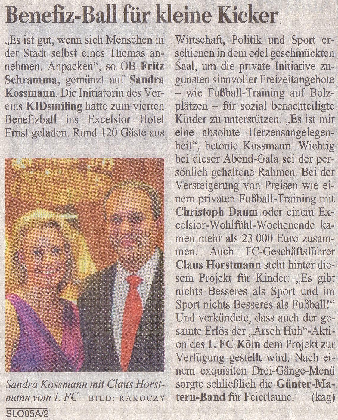 „KIDsmiling Benefizball 2017“, Kölner Wochenspiegel, 27.3.2017