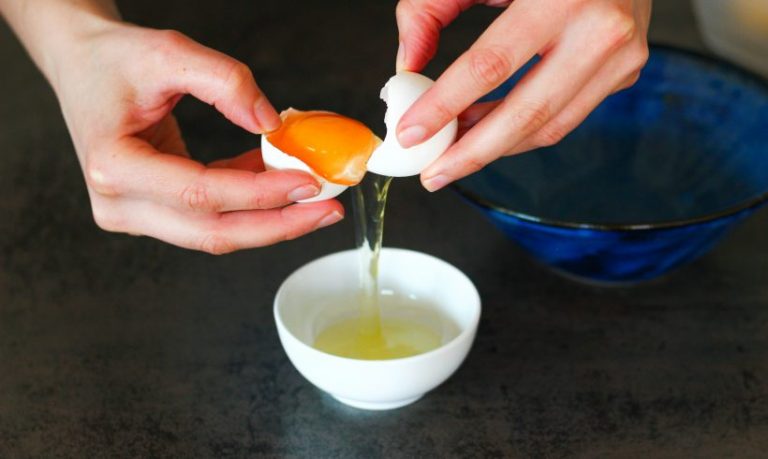 In einer Schüssel Eier und saure Sahne mischen, mit Salz und Pfeffer würzen.