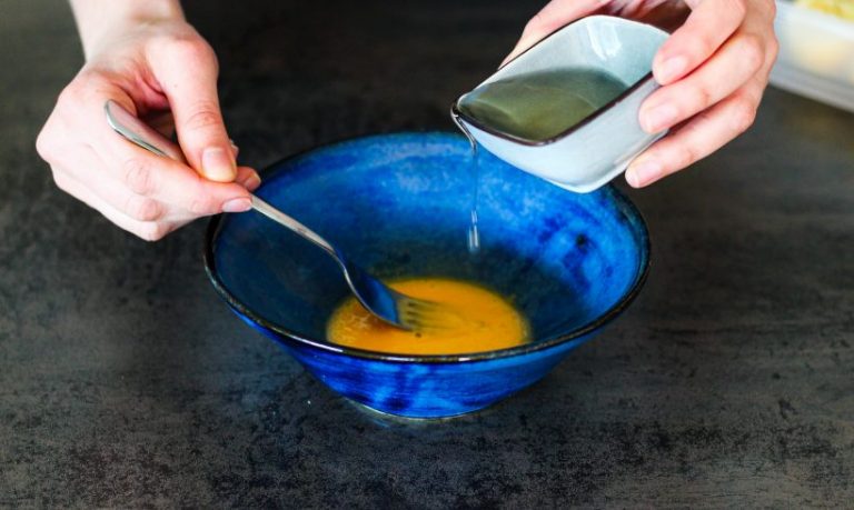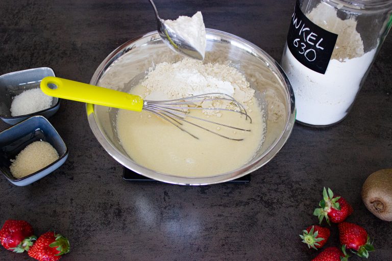 Das benötigst du: Schüssel, Schneebesen, Kelle, Bratpfanne