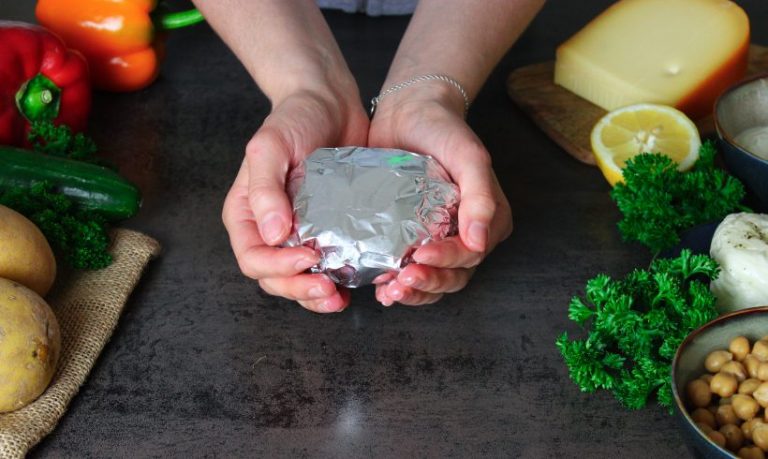 DAS BENÖTIGST DU: Schüssel, Schneidebrett, Gabel, Messer, Reibe, Pfanne, Ofen, Backblech, Alufolie.