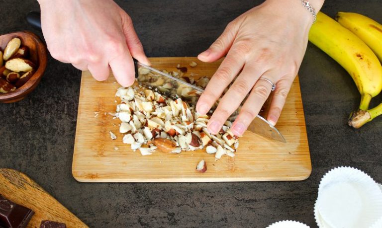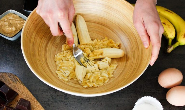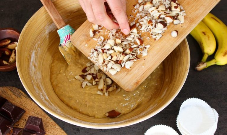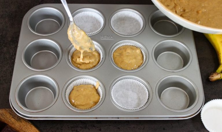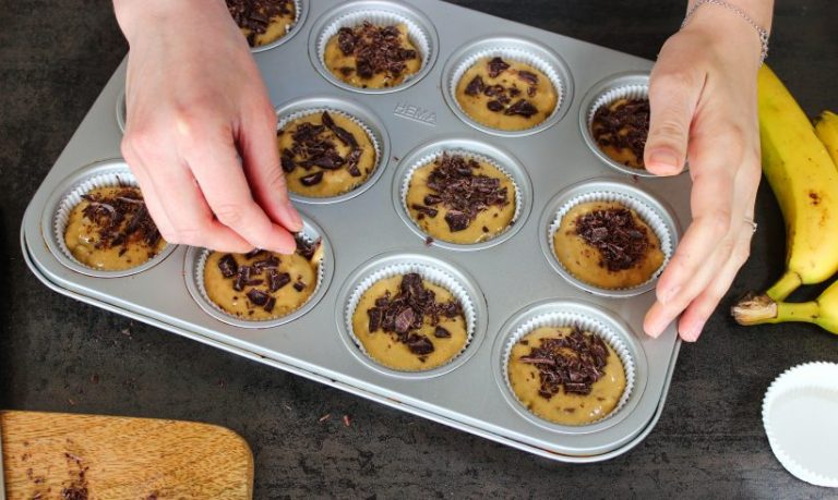DAS BENÖTIGST DU: Schüssel, Schneidebrett, Gabel, Teigschaber, Messer, Ofen, Muffinblech (wenn möglich), Papier-Muffin-Förmchen