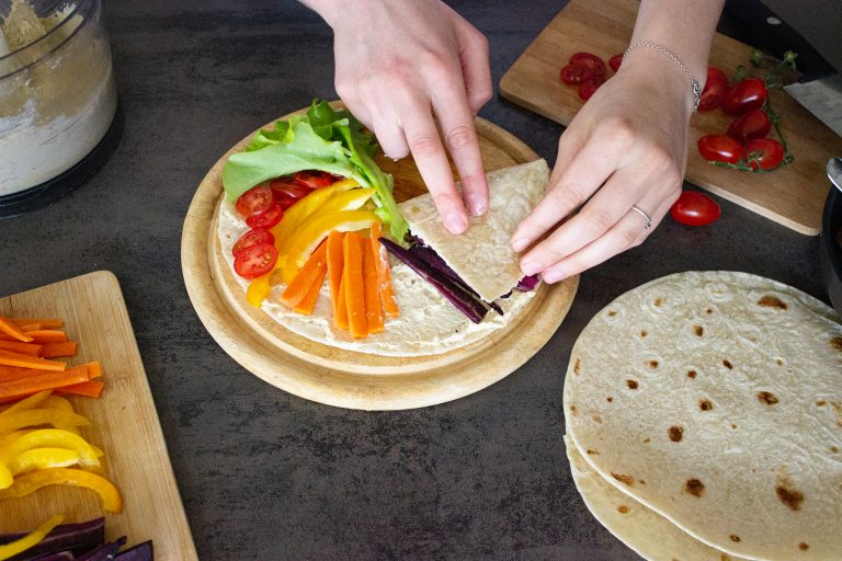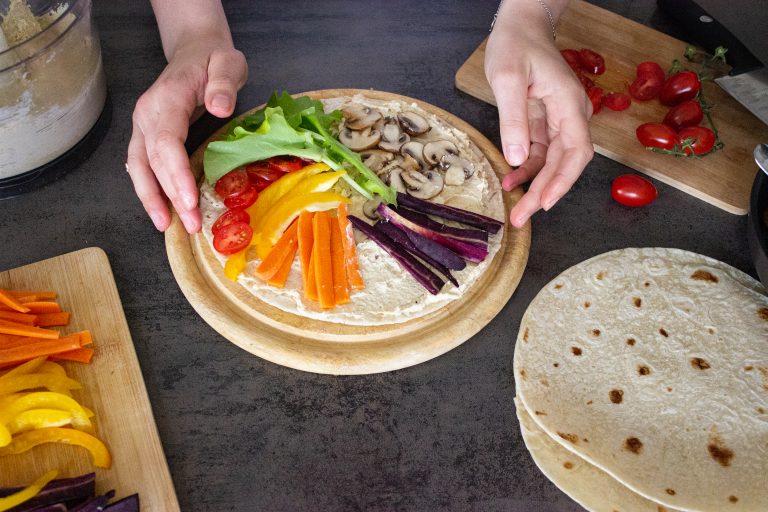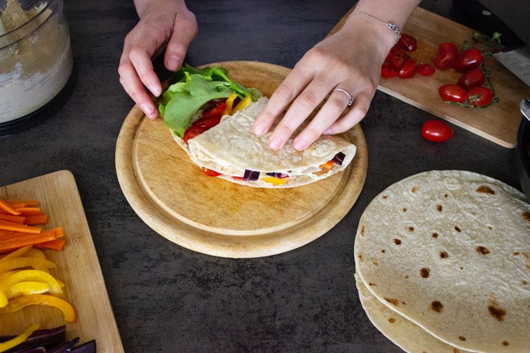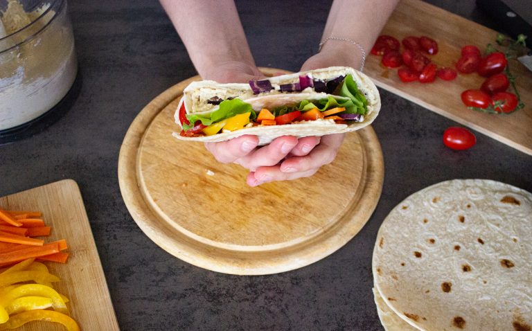 Ob als kleiner Snack zwischendurch oder als Hauptmahlzeit: Wraps sind eine gute Alternative zum Sandwich und sind eine superleckere und vielseitige Mahlzeit. Füllen, aufrollen und mitnehmen – Wraps sind schnell gemacht und super einfach vorzubereiten. Hier ist das Rezept für einen Wrap mit selbstgemachten Hummus!
