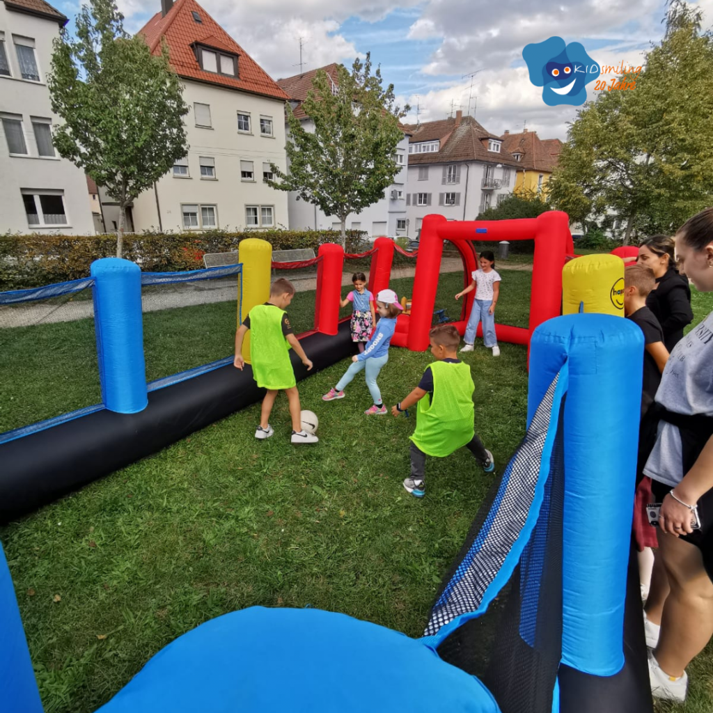 Aber das war noch nicht alles! Wir bedanken uns bei @cz.stuttgart für die Bereitstellung von einem aufblasbaren MiniSoccerFeld, auf dem die kleinen und großen Nachwuchstalente ihr Können zeigen konnten. Es war großartig, die strahlenden Gesichter der Kinder zu sehen, die voller Begeisterung gespielt haben.
